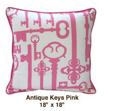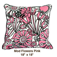 our colorful shams and pillows done in pink, orange, aqua and black will definitely pop against this neutral background