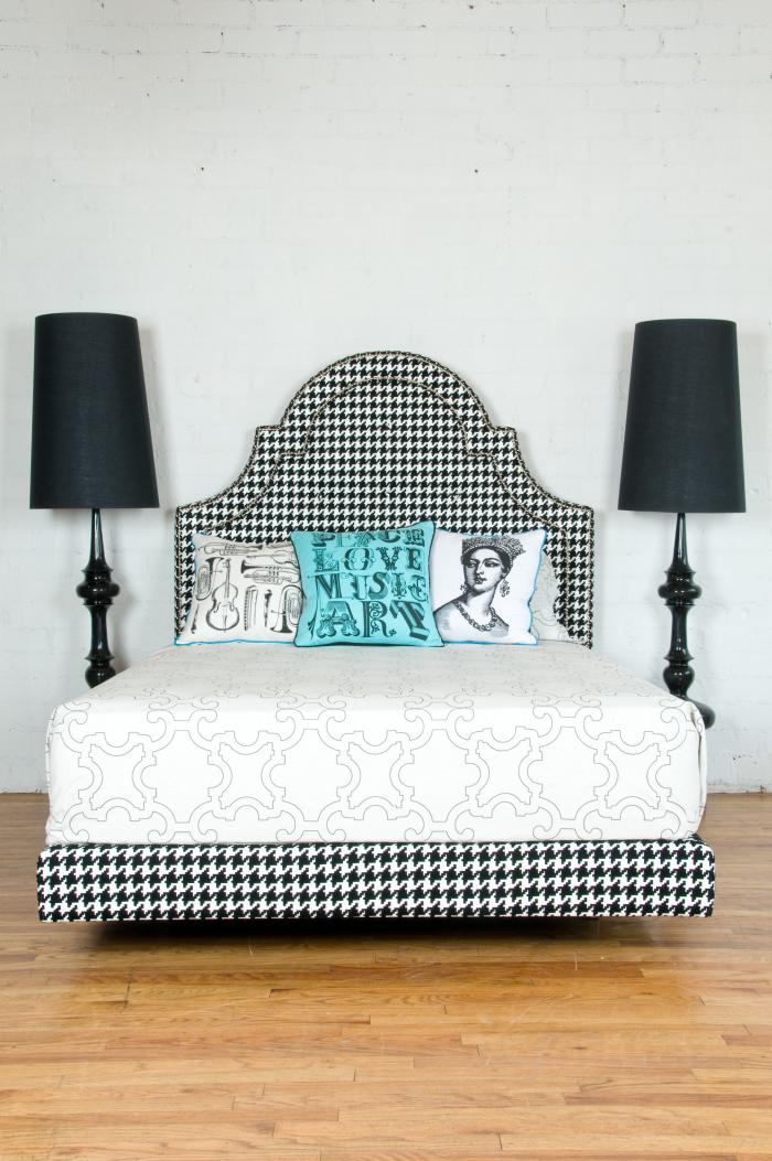Next we will add the headboard she selected. We both love houndstooth fabrics, so I was totally in love with this bed from Room Service. Of course we are upgrading her from a twin to a queen bed….Sweet!